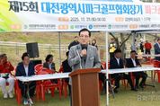외교저널 (Diplomacy Journal) 김학영 기자 | 대전시의회 조원휘 의장은 25일 갑천파크골프 1구장(유성구 탑립동)에서 개최된 제15회 대전광역시협회장배 파크골프대회에 참석해 안전한 대회 진행을 기원하며, 일류 체육도시 대전 조성을 위한 정책적 관심과 지원을 약속했다. 이날 대회는 지역을 대표하는 단체·기관장, 임원 및 선수, 시민 등 350여 명이 참석한 가운데 시 협회장의 대회사, 주요내빈 축사, 기념촬영 등의 개회식을 마친 뒤 남녀와 시니어·일반부로 나눠 18홀 스트로크 방식의 본격적인 대회로 이어졌다. 조원휘 의장은 “대전에는 유등천, 갑천, 을미기공원 등 6곳, 총 99홀의 파크골프장이 운영되고 있으며, 시민들의 참여가 늘면서 이제는 파크골프가 대전의 대표적 생활체육으로 자리잡았다”면서, “시민들의 관심과 수요가 커지는 만큼 동구 용운동에 2026년 12월까지 4,600여 평, 성북동에 2029년까지 최대 90홀 규모의 파크골프장이 조성되는 등 대전시의회는 시민들의 체육인프라 조성에 많은 노력을 기울이고 있고, 앞으로도 시민 모두가 파크골프를 비롯한 다양한 생활체육을 언제, 어디서나 즐길 수 있도록 의