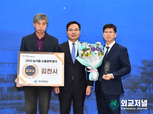 외교저널 (Diplomacy Journal) 조규호 기자 | 김천시는 지난 19일 경상북도청에서 열린 ‘2022년 농식품 수출정책 우수 시군 평가’에서 최우수 기관에 선정되어 기관 표창과 함께 상사업비 3천만 원을 수상했다고 밝혔다.