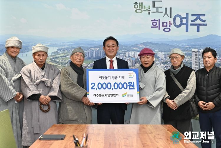 외교저널 (Diplomacy Journal) 조규호 기자 | 여주불교사암연합회는 26일 여주시청을 방문해 지역 내 어려운 이웃을 위해 사용해달라며 성금 200만원을 기탁했다.