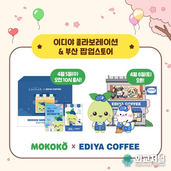 외교저널 (Diplomacy Journal) 이정하 기자 | 이디야커피는 오는 4월 스마일게이트RPG의 대표 MMORPG 게임 로스트아크와 협업해 다양한 굿즈를 선보이고, ‘이디야커피X모코코 팝업스토어’를 운영한다고 29일 밝혔다.