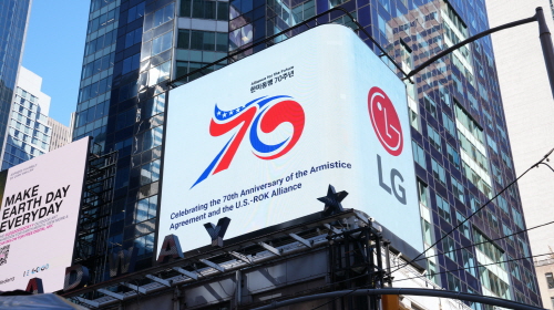 LG가 현지 시각 20일부터 2주간 뉴욕 타임스스퀘어에서 한미 동맹 및 정전협정 70주년을 기념해 한국전쟁 참전용사의 희생과 공헌에 대한 감사 메시지를 담은 영상을 상영한다.