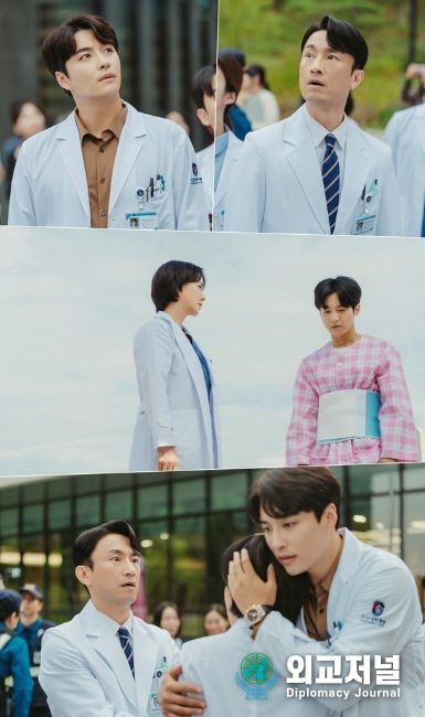 그런 가운데 어딘가를 바라보는 서인호, 로이킴의 놀란 얼굴이 눈길을 끈다. 두 남자의 걱정 어린 시선 끝에는 환자와 옥상 난간에 서 있는 차정숙이 있다. 위태로운 광경에 떠들썩해진 주변 분위기와 달리 환자를 달래는 차정숙의 얼굴은 흔들림 없이 차분하다.