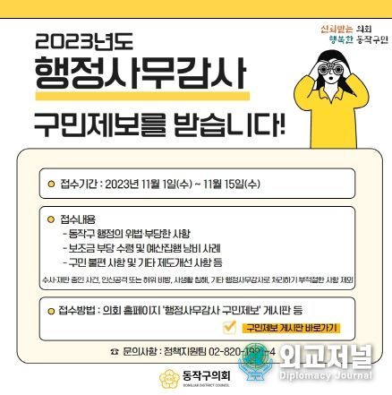 외교저널 (Diplomacy Journal) 김학영 기자 | 동작구의회는 11월 21일부터 예정되어 있는 ‘2023년도 행정사무감사’를 앞두고 1일부터 15일까지 주민 의견을 접수한다.