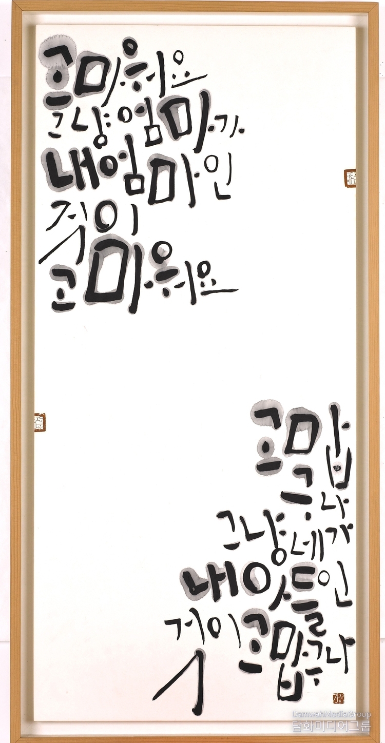 특히 이번 작품에서 돋보이는 것은 ‘고마움’이라는 단어가 지닌 정서적 무게다. 작가는 “그냥 엄마니까”, “그냥 네가 있어서”라는 일상의 고백을 조형 언어로 번역해, 가장 단순한 문장이 가장 깊은 감정을 품고 있다는 사실을 다시 일깨운다. 이는 단순한 캘리그라피가 아니라, 감정의 결을 섬세하게 시각화한 감성 회화에 가깝다.