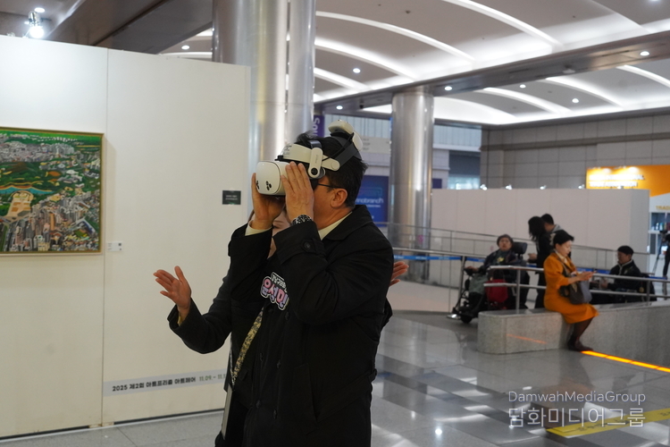 또한, 9일부터 13일까지 코엑스 남문 로비에서 열린 이번 아트페어에는 앞서 소개된 30명의 장애예술가의 작품 총 49점을 선보였다. 전시장은 ‘스토리존’, ‘체험존’, ‘이벤트존’으로 구성되어 관람객들이 단순한 감상에 머무르지 않고 직접 예술을 경험할 수 있도록 했으며, 특히 AR(증강현실) 기술을 활용한 ‘AR 아트 체험존’은 메타퀘스트 기기를 통해 현실과 가상이 결합된 새로운 전시 경험을 제공하며, 큰 호응을 얻었다. 이번 체험존에는 전시 참여 작가의 작품 2점과 고전 명화 2점을 AR 콘텐츠로 구현해, 관람객들이 작품을 실제처럼 느끼고 몰입할 수 있는 새로운 체험을 선보였다.