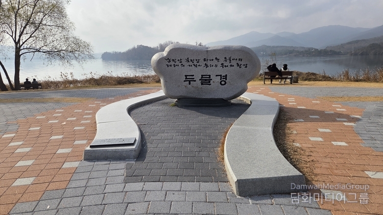 두 번째 사진에 등장하는 ‘두물경’ 표석은 두물머리라는 지명이 단순한 지역 명칭이 아니라 ‘두 물이 경계 없이 하나로 이어지는 자리’라는 철학적 의미를 품고 있음을 알려준다. 표석 뒤편으로 펼쳐진 강물은 잔잔하고, 겨울 구름은 흐릿한 빛으로 풍경을 덮으며 시간을 더 느리게 흐르게 한다.