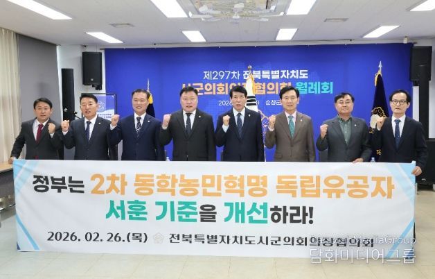 외교저널 (Diplomacy Journal) 김학영 기자 | 전북특별자치도시군의회의장협의회(회장 남관우 전주시의회 의장)는 26일 순창군의회에서 열린 제297차 월례회에서 2차 동학농민혁명 참여자 독립유공자 서훈 인정 법령 개정 및 '지방의회법'제정을 촉구했다.