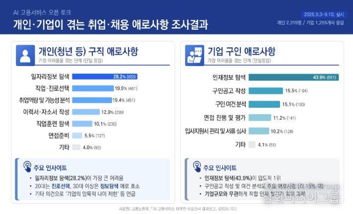 고용노동부는 3월 20일 정동1928아트센터에서 '청년과 함께하는 AI 고용서비스 오픈토크'를 개최하고, 구직자와 기업이 직접 선택한 AI 고용서비스 수요조사 결과와 그간의 운영성과, 2026년 확대 계획을 공개했다.