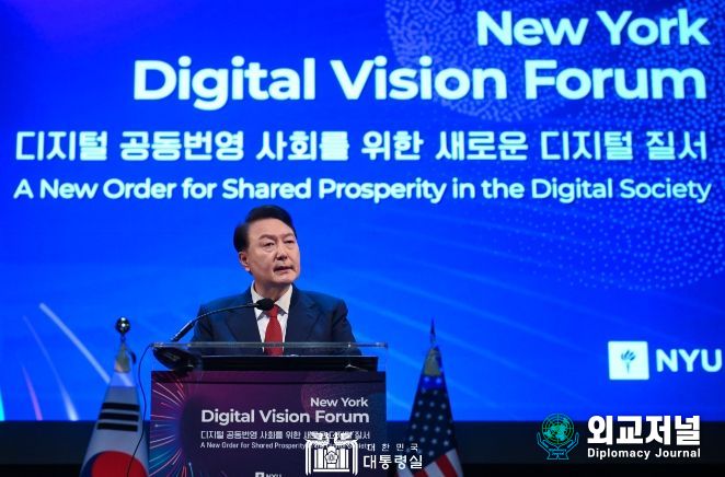 외교저널 (Diplomacy Journal) 이존영 기자 | 윤석열 대통령은 미국 현지시간 9월 21일 09:30 뉴욕대학교에서 개최된 ‘뉴욕 디지털 비전 포럼’에서 미국 대표 인사들과 세계적 석학들이 참석한 가운데, 기조연설을 통해 새로운 디지털 질서 규범인 「디지털 권리장전」의 기본 원칙들을 제시했다.