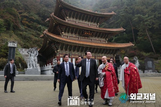 외교저널 (Diplomacy Journal) 이존영 기자 | 윤석열 대통령은 10월 19일 오후 충북 단양에 있는 천태종의 본산인 구인사를 방문해 종정 도용스님을 예방하고, 국가와 국민의 평안을 기원했다.