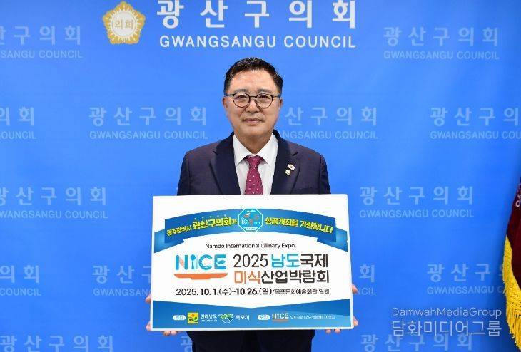 외교저널 (Diplomacy Journal) 김학영 기자 | 김명수 광주 광산구의회 의장이 24일 ‘2025 남도국제미식산업박람회’의 성공적인 개최를 기원하는 릴레이 응원 캠페인에 동참했다.