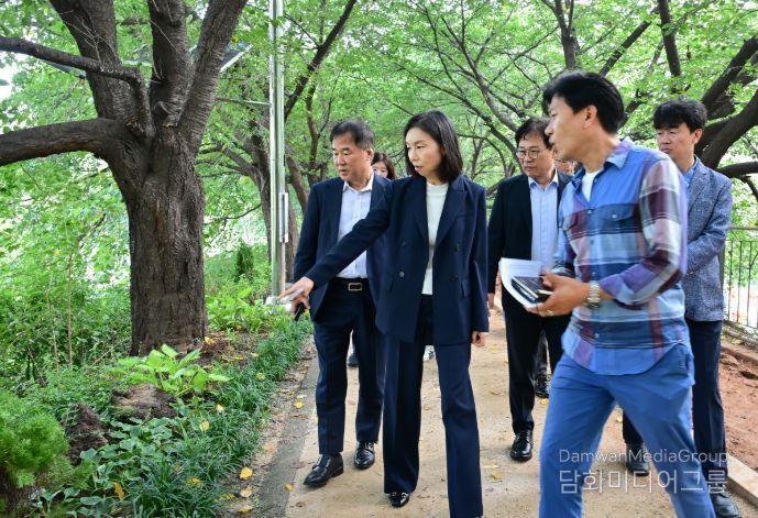 외교저널 (Diplomacy Journal) 김학영 기자 | 최호정 서울특별시의회 의장은 26일 안양천 생태연못 일대를 방문해 수목 등 식재된 조경 상태를 살피고 관계자들과 조경 유지관리 개선방안을 모색했다.