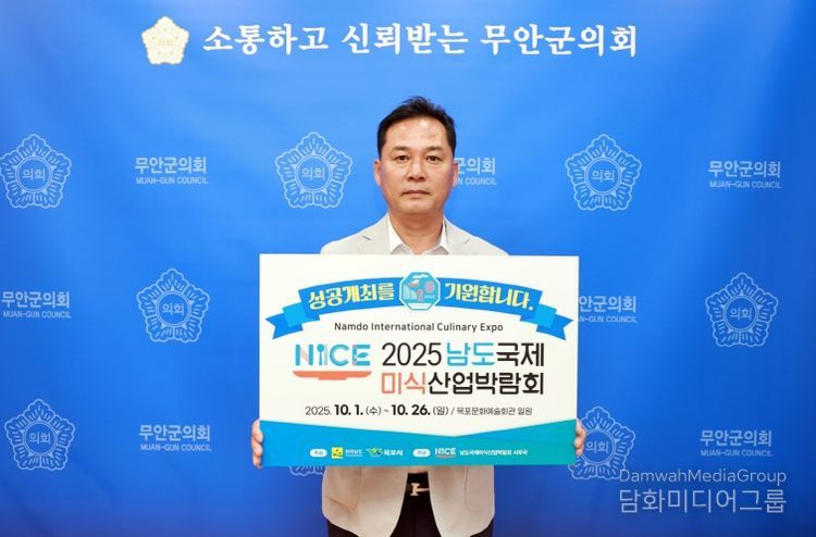 외교저널 (Diplomacy Journal) 김학영 기자 | 무안군의회 이호성 의장은 김산 무안군수와 박종대 영암군의회 의장의 지명을 받아 오는 10월 1일부터 26일까지 목포문화예술회관 일원에서 열리는 ‘2025 남도국제미식산업박람회’ 성공을 기원하는 릴레이 응원 캠페인에 동참했다.