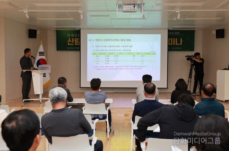 세미나에서는 먼저 백두현 제천시 산림과장이 ‘제천시 산림현황 및 산림경영 발전방향’을 발표하며 지역 산림의 지속가능한 관리 방안과 정책적 지원 필요성을 강조했다. 이어 국산목재협동조합 김지훈 이사장이 ‘제천시 목재산업 현황과 과제’를 주제로 지역 목재산업의 성장 여건과 현실적 문제점을 짚었다.
