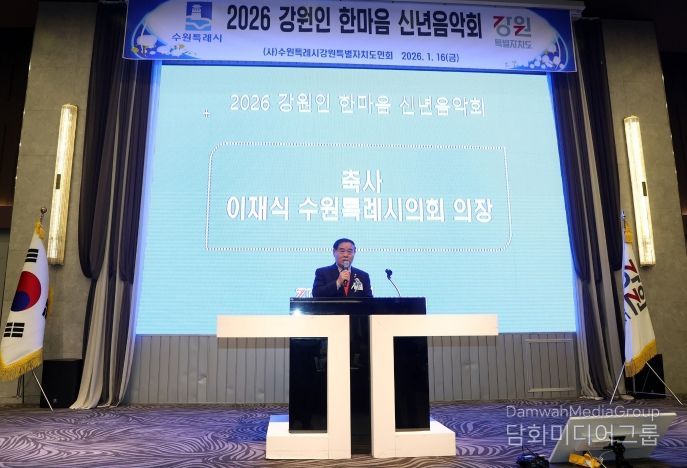 외교저널 (Diplomacy Journal) 김학영 기자 | 수원특례시의회는 1월 16일수원컨벤션센터에서 열린 '2026 강원인 한마음 신년음악회'에 참석했다. 이번 행사는 수원특례시 강원특별자치도민회가 주최한 신년 행사로, 이재식 의장을 비롯한 내빈과 강원 출신 시민 등 약 250여 명이 참석한 가운데 신년음악회, 표창 수여, 만찬 등의 순서로 진행됐다.