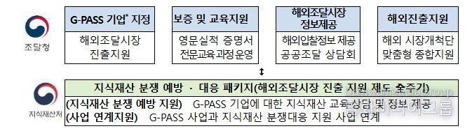 우리 기업의 우수한 기술경쟁력 확보를 위해서는 초기 단계부터 지식재산을 확보하고 보호하는 것이 점점 중요해지는 상황에서, 이번 협약은 해외조달시장 진출 과정에서 발생할 수 있는 지식재산 분쟁과 기술유출 위험에 효과적으로 대응할 수 있도록 양 기관의 정책과 지원사업을 연계하기 위해 마련되었다.