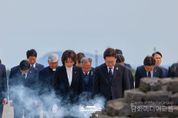 외교저널 (Diplomacy Journal) 이존영 기자 | 이재명 대통령과 김혜경 여사는29일 오전, 제주 4·3 평화공원을 찾아 영령들께 참배하고 유족들과 함께하는 시간을 가졌다. 이번 방문은 국가기념일인 ‘제주 4·3 희생자 추념일’을 앞두고 이루어진 것으로, 이 대통령 내외는 헌화와 분향을 통해 희생자들의 넋을 기렸다. 이어 이 대통령 내외는 희생자 15,126위의 위패가 모셔진 ‘위패봉안실’과 4·3 당시 행방불명되어 시신조차 찾지 못한 희생자들의 표석이 설치된 ‘행방불명인 표석’을 찾아 희생자들을 추모했다. 이 대통령은 위패봉안실에서 나와 방명록에 ‘제주 4·3을 기억하며 국가폭력의 재발을 막기 위해, 민형사 시효제도를 폐기하겠습니다.“라고 남겼다. 이 대통령이 방명록을 작성하는 모습을 지켜보던 임문철 제주4·3평화재단 이사장을 비롯한 관계자들은 문구를 보고 박수로 호응했다. 참배 이후 이 대통령 내외는 제주 4·3 희생자 유족들과 오찬을 함께하며 아픔을 나누고 위로하는 시간을 가졌다. 오찬 간담회에는 윤호중 행정안전부 장관과 오영훈 제주도지사, 김한