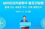 외교저널 (Diplomacy Journal) 이존영 기자 | 주요 20개국(G20) 정상회의 참석을 위해 남아프리카공화국을 방문한 이재명 대통령은 23일(현지시간) 양국 수교 후 최초로 동포간담회를 개최해 현지에 거주하는 동포들을 격려했다. 이번 간담회에는 동포단체 대표, 경제인, 민주평통 자문위원, 한글학교 관계자, 문화예술인 등 약 70명이 참석했다. 동포 대표로 나선 전소영 남아공 한인회장은 환영사에서 "한국과 남아공은 오랜 세월 우정과 신뢰를 쌓아온 파트너인 만큼, 대통령님의 이번 방문이 양국 관계를 굳건히 다지는 계기가 되기를 기대한다"는 소망을 전했다. 이 대통령은 격려사를 통해 "모국에서 약 1만 2000km인 삼만 리나 떨어진 남아공에서도 동포들이 주권 행사에 어려움이 없도록 전자투표 도입 등 재외선거제도 개선에 노력하겠다"라고 말했다. 또한, "재외동포 현황을 면밀히 파악하고 동포들의 활동을 본국이 적극 지원해 대한민국 국민으로서 소외되지 않고 자부심을 가질 수 있도록 최선을 다하겠다"고 격려했다. 이어 이동민 민주평통자문회의 아프리카협의회 중남부지회장의 건배사로 본격적인 오찬이 시작됐다. 이 대통령은 동포들의 다양한 목소리를 경청하기 위해