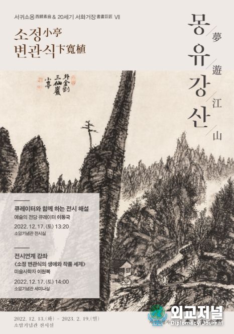 외교저널 (Diplomacy Journal) 이성준 기자 | 서귀포시는 근현대 한국화의 거장이자 금강산의 화가로 널리 알려진 소정 변관식을 소개하는 '서귀소옹과 20세기 서화거장 VII 소정小亭 변관식卞寬植, 몽유강산夢遊江山'을 12월 13일부터 2023년 2월 19일까지 소암기념관에서 개최한다고 밝혔다.