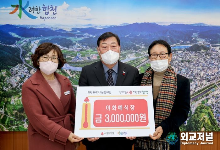 외교저널 (Diplomacy Journal) 조규호 기자 | 이화예식장은 23일 합천군청을 방문해 이웃돕기 성금 300만원을 기탁했다.