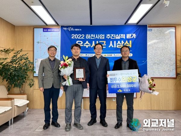 외교저널 (Diplomacy Journal) 조규호 기자 | 의성군은 경상북도에서 실시한 2022년 하천사업 추진실적 평가에서 지난해에 이어 3년 연속‘군부 최우수상’을 수상했다고 밝혔다.