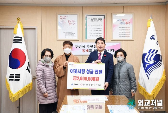 외교저널 (Diplomacy Journal) 조규호 기자 | 부산 동래구는 지난 19일 불교총지종 정각사 자비회가 성금 200만 원을 기탁했다고 밝혔다.