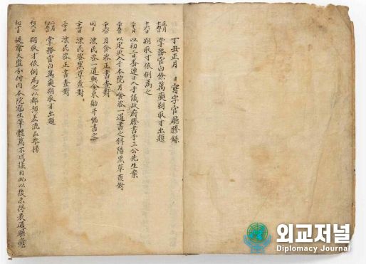 외교저널 (Diplomacy Journal) 이성준 기자 | 문화재청 국립고궁박물관(관장 김인규)은 그동안 관련 사료가 부족해 전체의 내용이 제대로 밝혀지지 않았던 사자관청(寫字官廳) 운영과 사자관(寫字官)의 활동이 기록되어 있는 사자관청등록(寫字官廳謄錄)을 최초로 번역한'국역 사자관청등록'을 발간했다.