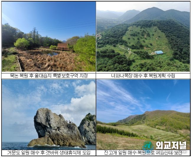 매수한 토지는 야생생물의 안전한 서식공간을 확보하고 생태계 건강성을 회복하기 위해 유형별로 보전‧복원하고 관리된다.