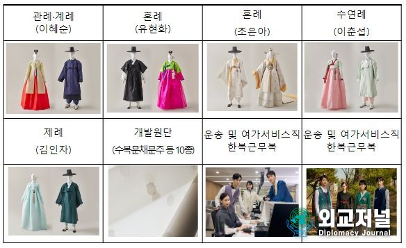 한편 문체부와 공진원은 2020년에는 문화예술업, 2021년에는 관광숙박업에 적용할 수 있는 한복근무복 150여 종을 개발한 바 있다. 현재 국립한글박물관, 한국문화재재단, 상주시청, 장성군청, 종로구청 등 18개 기관이 한복근무복을 도입했다.