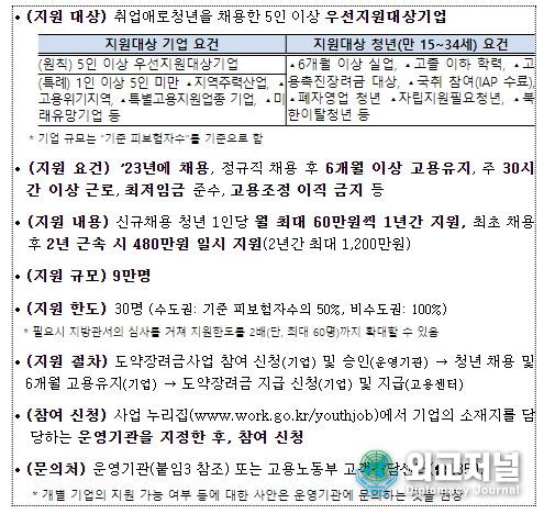 ' ‘23년 청년일자리도약장려금 사업 주요 내용 '