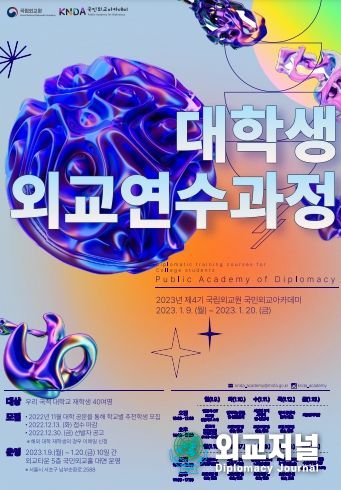 외교저널 (Diplomacy Journal) 이정하 기자 | 외교부 국립외교원은 1.9일부터 1.20일까지 2주간 우리국적 대학생을 대상으로 '국민외교아카데미 제4기 대학생 외교 연수 과정'을 개최한다.