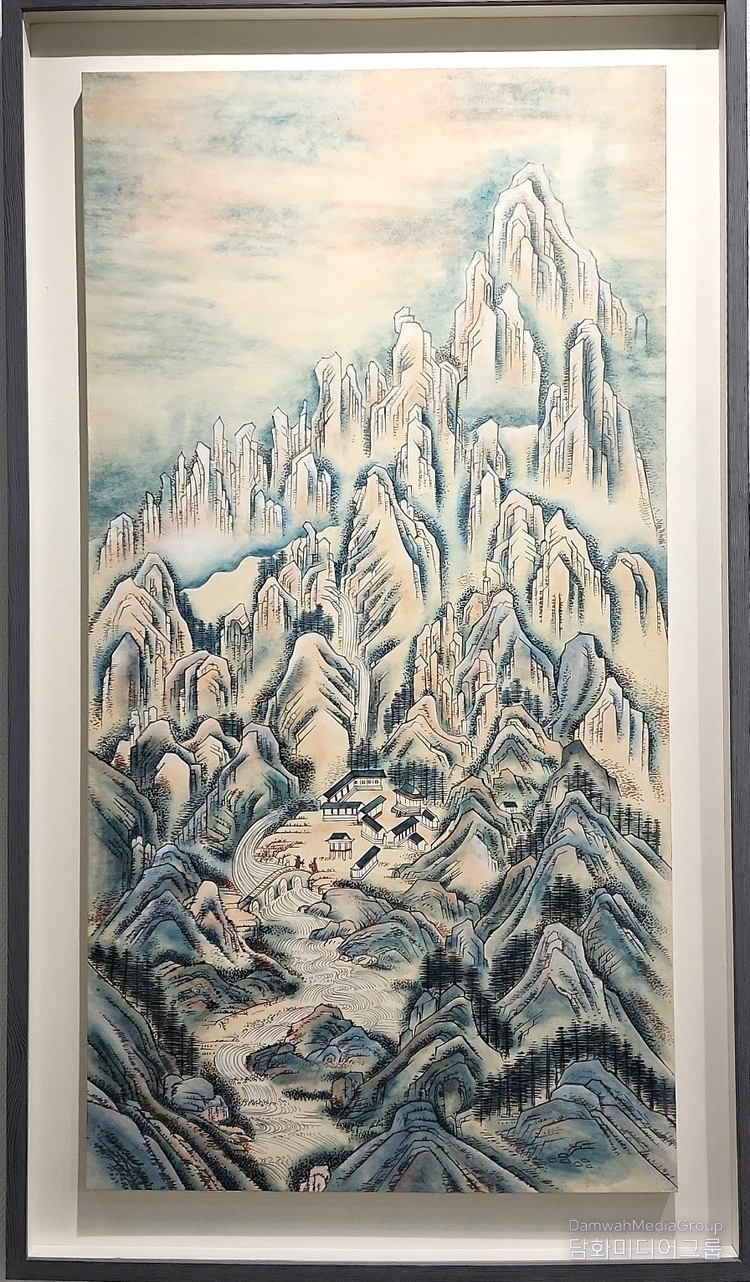 그의 색채는 절제와 여백 속의 울림으로 표현된다. 짙은 남청과 은은한 분홍, 옥빛 안개가 번지듯 겹쳐져 한국적 청현清賢의 정서를 형성한다. 이 색은 단순히 아름다운 풍광을 묘사하는 것이 아니라, 마음의 온도와 호흡을 담아낸다. 그리움의 색이 한지 위에 스며들고, 그 여백 속에서 시간은 멈춘다. 〈그리운 금강산〉은 그렇게 기억을 색으로 번역한 회화다.