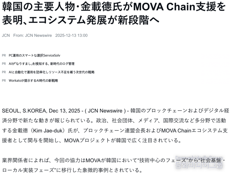 | ACN Newswire | 2025.12.12 | 글로벌 PR 배포 플랫폼 | 김재덕의 MOVA Chain 지지 및 아시아 시장 확장 메시지 강조 |