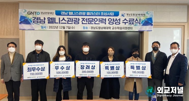외교저널 (Diplomacy Journal) 이존영 기자 | 경상남도와 경남관광재단은 9월부터 12월까지 ‘경남 웰니스관광 전문인력 양성 교육과정’을 운영해 지난 12월 7일 22명의 수료생을 대상으로 수료식을 개최했다.