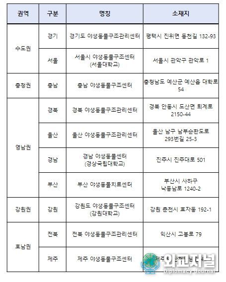 아울러 환경부는 부상당하거나 유기된 야생동물을 발견할 경우 임의로 조치하기 전에 해당 지역 야생동물구조센터로 신고해줄 것을 안내했다.
