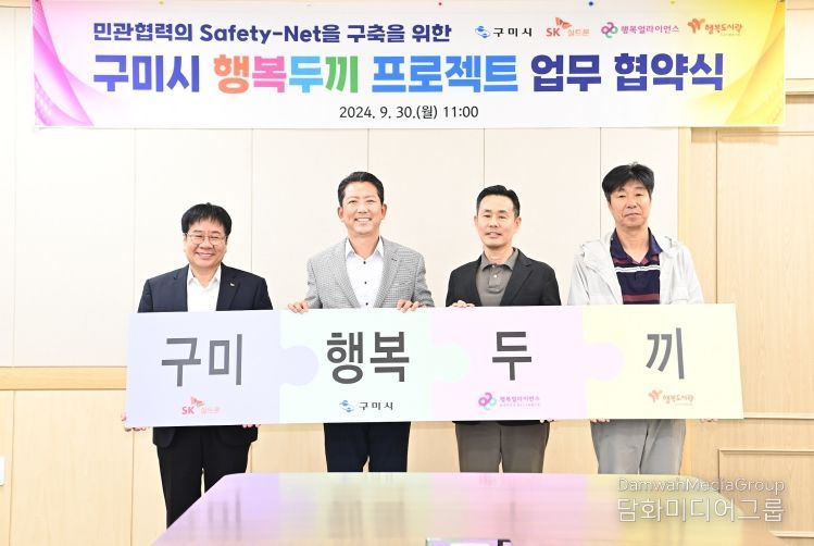 외교저널 (Diplomacy Journal) 김학영 기자 | 구미시는 30일 시청 중회의실에서 김장호 구미시장, 조경철 SK실트론 대외협력담당, 조민영 행복나래(주) 본부장, 최준 행복도시락협동조합 사무국장이 참석한 가운데 ‘행복두끼프로젝트’ 협약식을 개최했다.