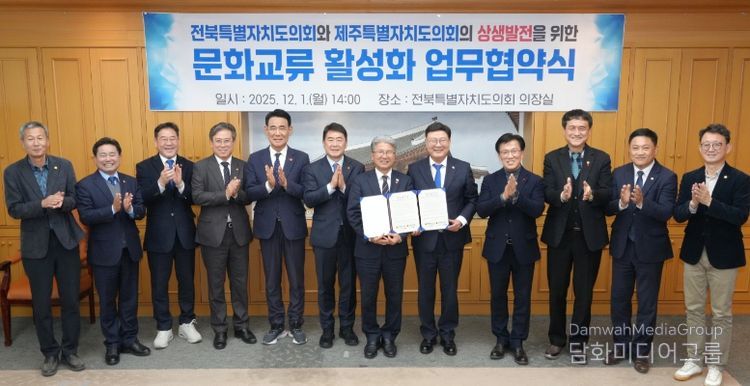 외교저널 (Diplomacy Journal) 김학영 기자 | 전북특별자치도의회와 제주특별자치도의회는 문화·관광·세계유산 분야 협력을 강화하기 위해 1일 전북도의회 의장실에서 문화교류 활성화 업무협약(MOU)을 체결했다.