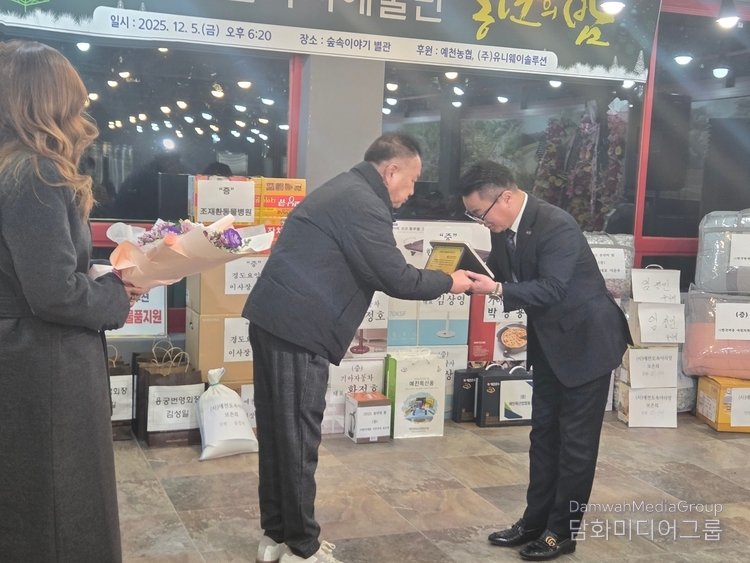 이어 유니웨이솔루션 권민준 대표가 이창희 단장에게 800만 원 상당의 물품협약서를 전달하는 선행으로 뜨거운 박수를 받았으며, 이 단장은 권 대표에게 자랑스런 출향기업인상을 전하고 감사의 인사를 대신했다.
