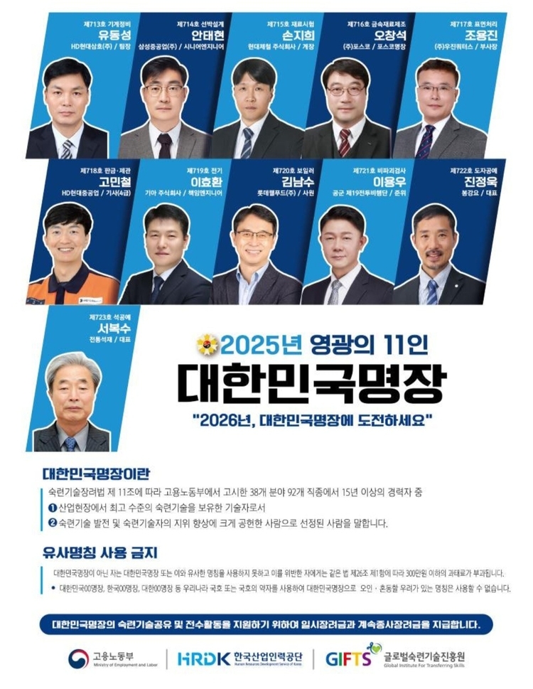 그러나 분명히 짚어야 할 사실이 있다. ‘대한민국명장’은 호칭이 아니라 법으로 보호되는 국가 공인 명칭이며, 이를 흉내 낸 유사명칭 사용은 명백한 처벌 대상이라는 점이다.