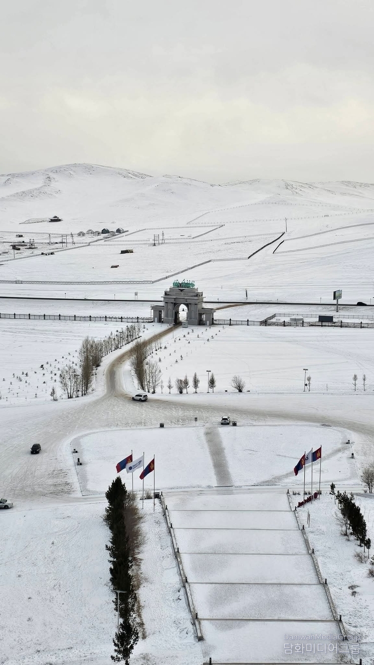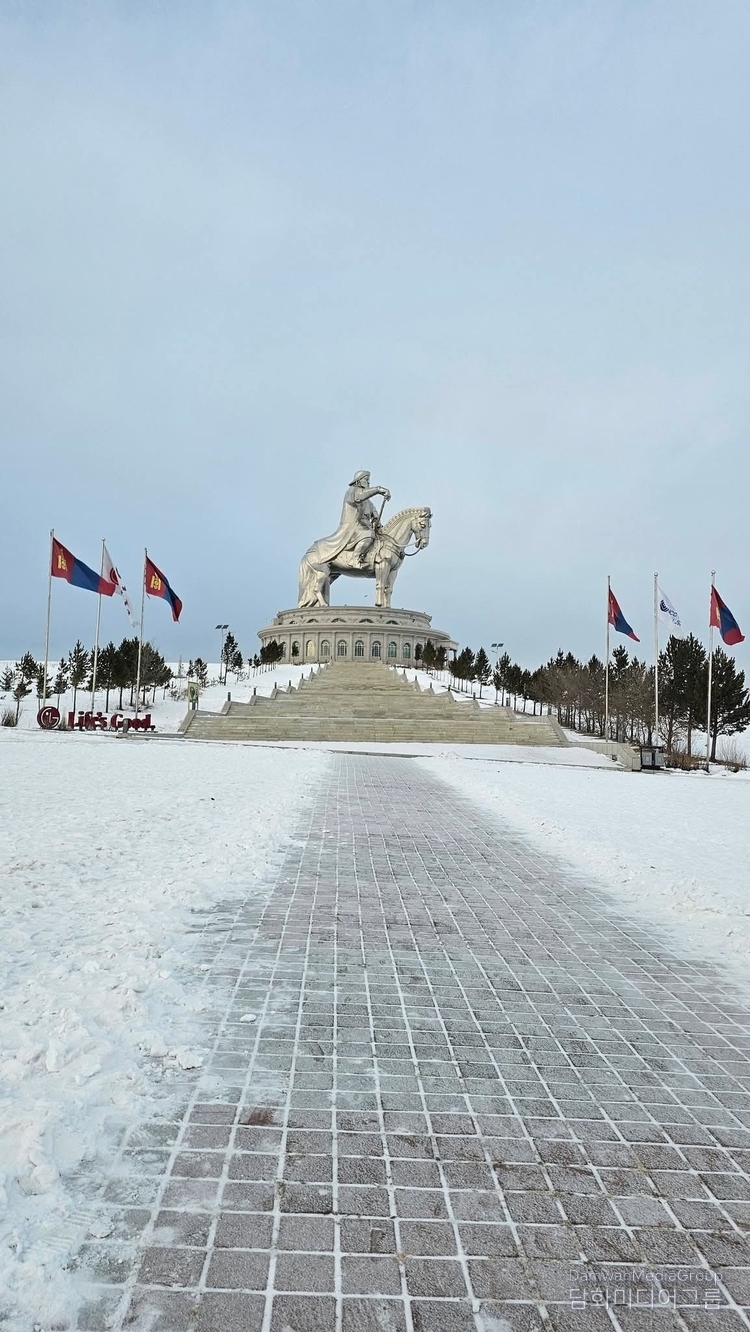 그러나 한겨울, 모든 것이 달라진다. 흰 눈이 초원을 덮고, 하늘과 땅의 경계가 사라질 때, 은마동상은 침묵의 상징이 된다. 차가운 은빛 위에 내려앉은 눈은 화려함을 지우고, 남는 것은 결기와 고독이다. 이때의 칭기스칸은 정복자가 아니라, 혹독한 자연과 운명을 견뎌낸 ‘존재의 상징’으로 다가온다.
