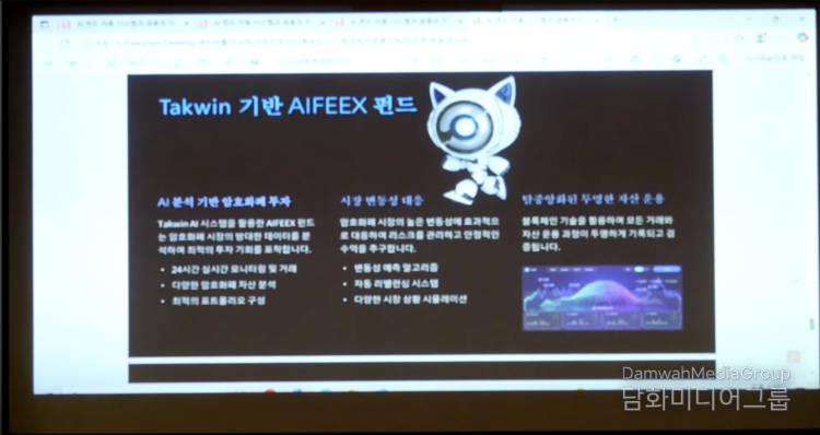 본지가 확보한 현장 슬라이드에는 “Takwin 기반 AIFEEX 펀드”라는 제목이 명확히 표기돼 있다.