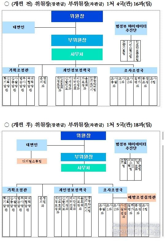 1. 개인정보사고 예방 전담 예방조정심의관(1관)·사전실태점검과(1과) 신설