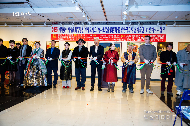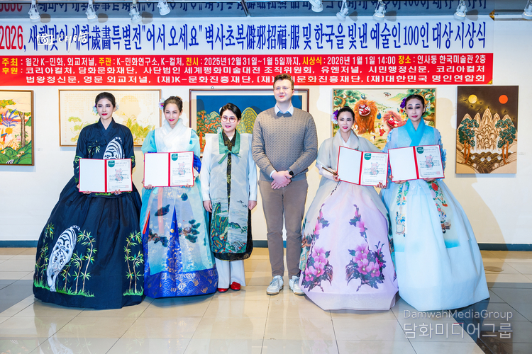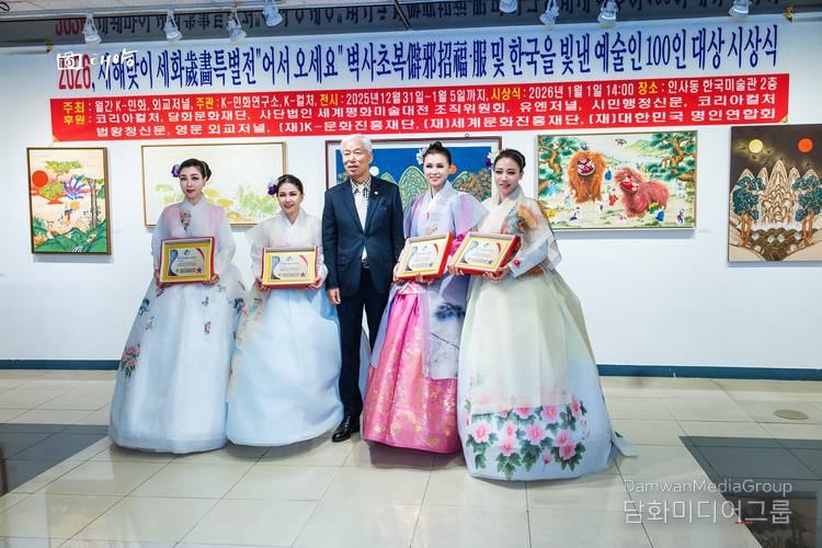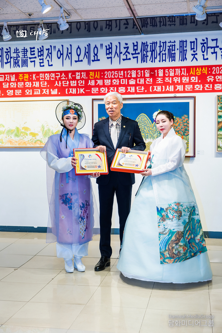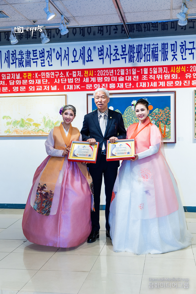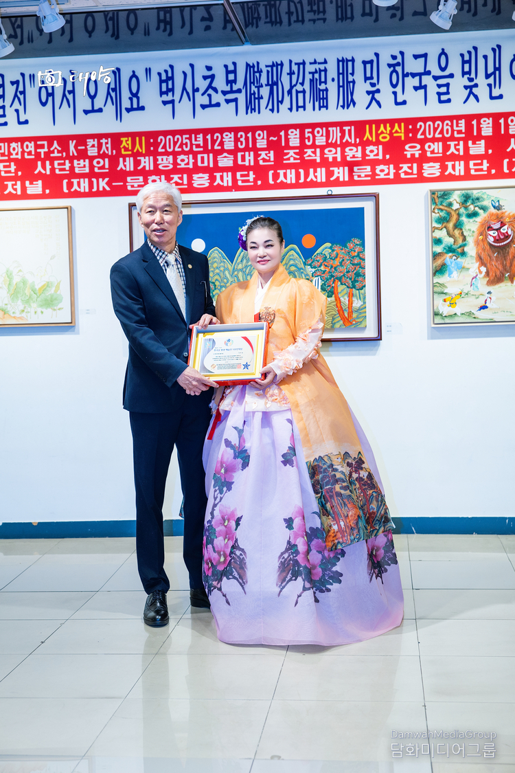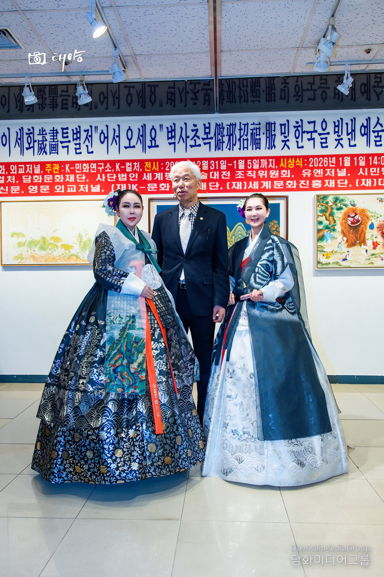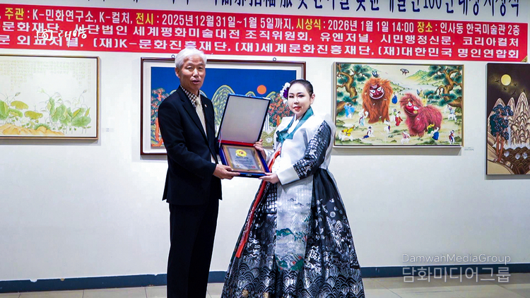 전시장은 K-민화 작품 전시를 중심으로 ▲k-민화한복 패션쇼 ▲세화 특별전 시상식 ▲대한민국 명인 인증서 수여 ▲‘한국을 빛낸 예술인 100인 대상’ 시상 ▲문화 퍼포먼스로 이어지며, K-민화 종합 문화축제로 구성됐다.