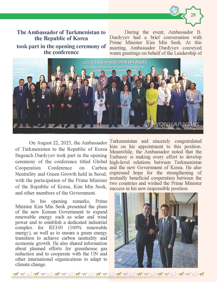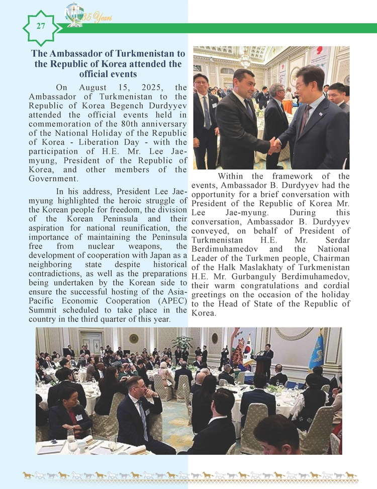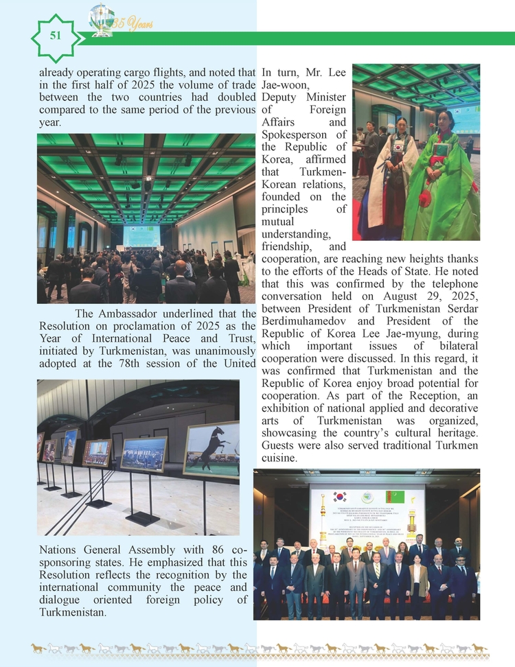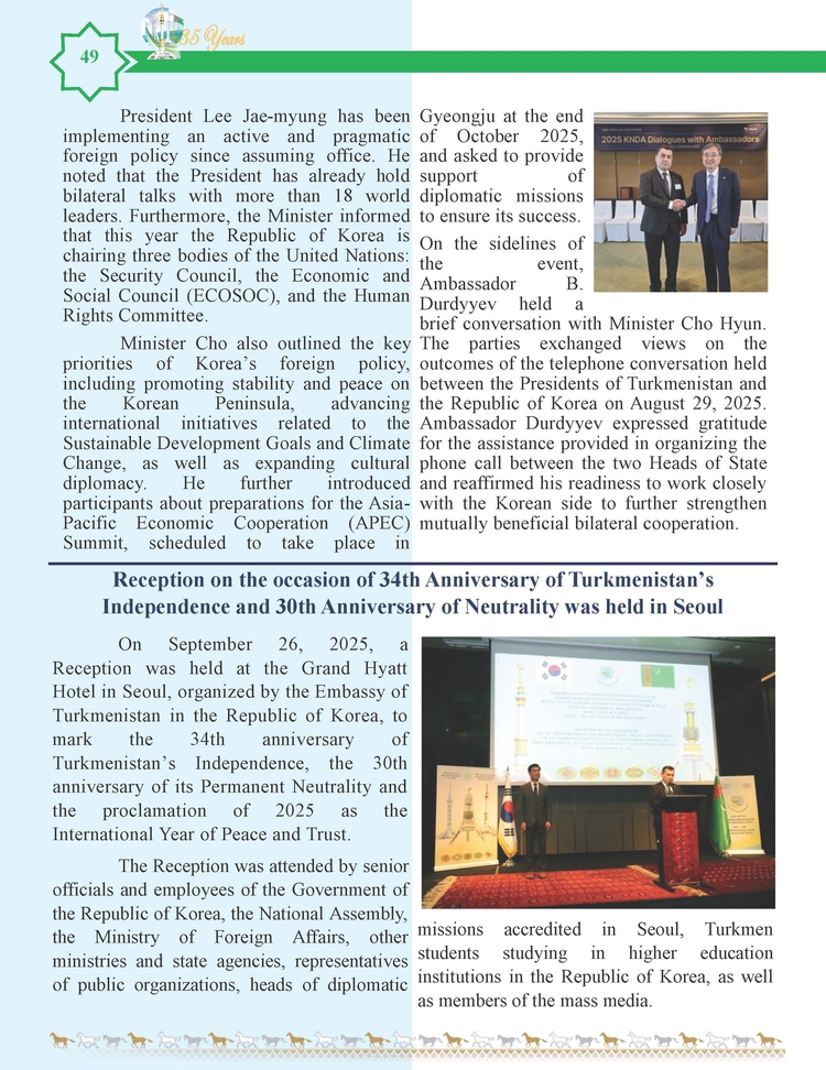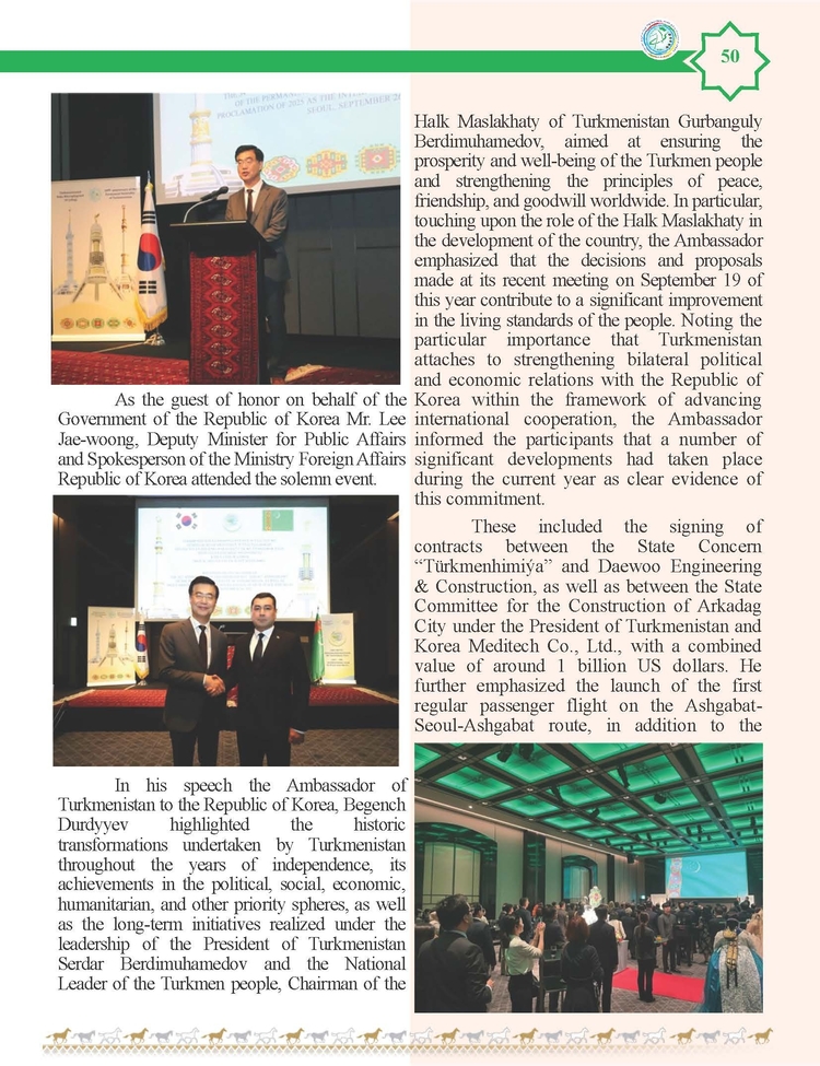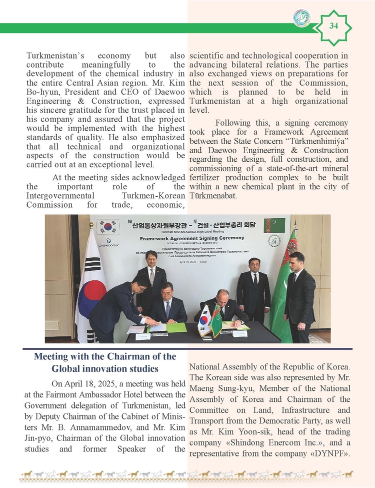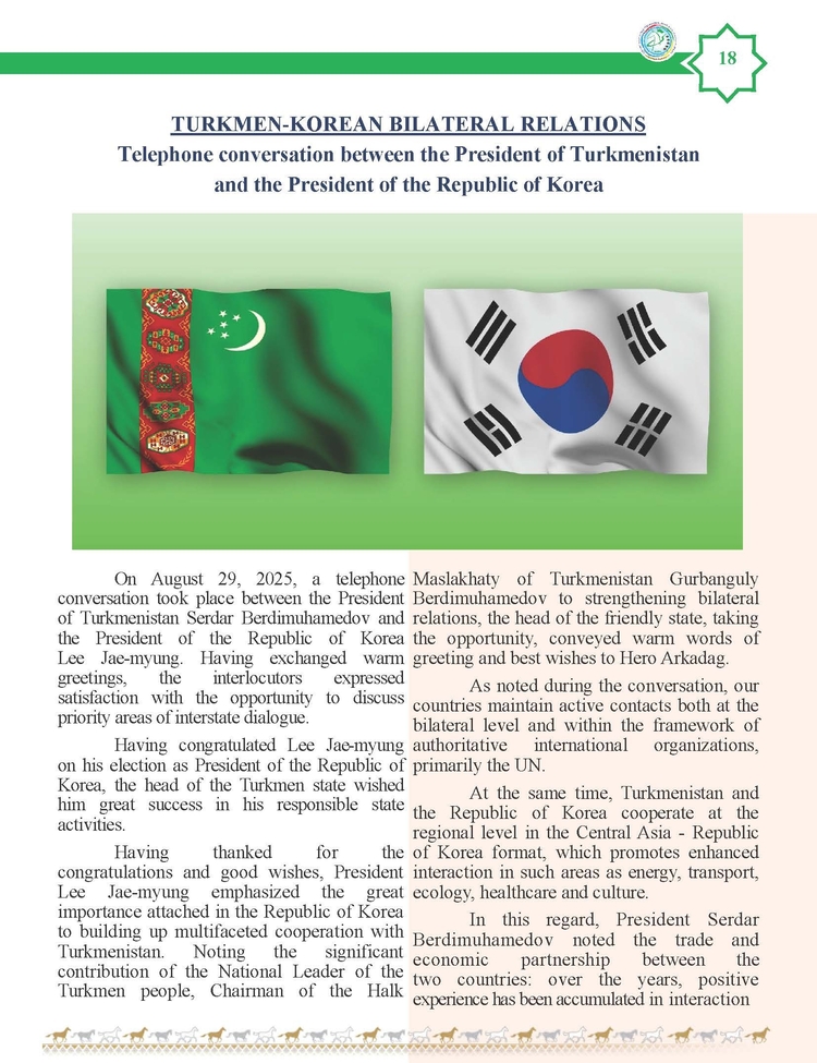 외교저널 (Diplomacy Journal) 이정하 기자 | TURKMENISTAN BILEN KOREYA RESPUBLIKASYNYN ARASYNDAKY HYZMATDA LYK OSDURILYAR