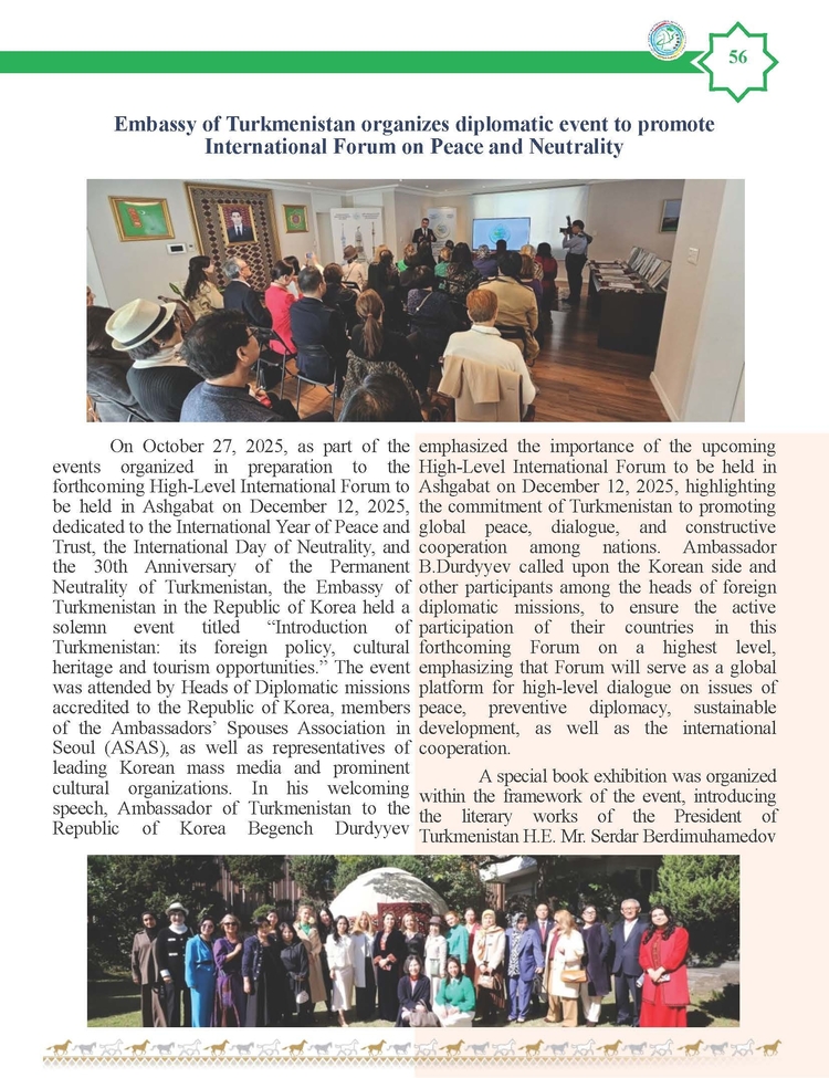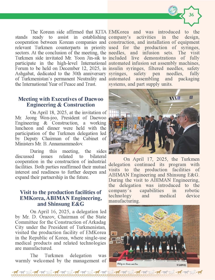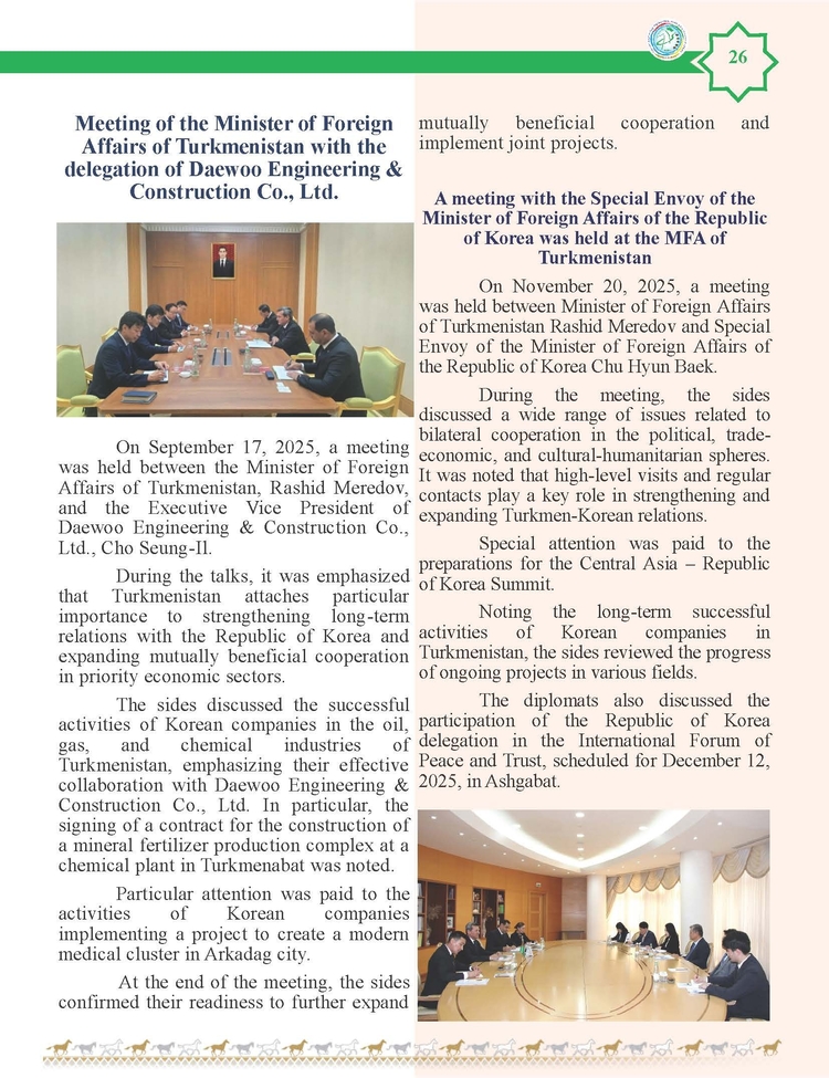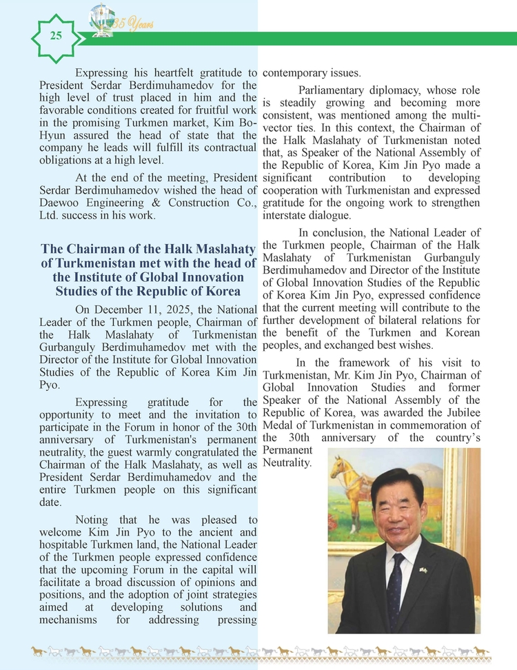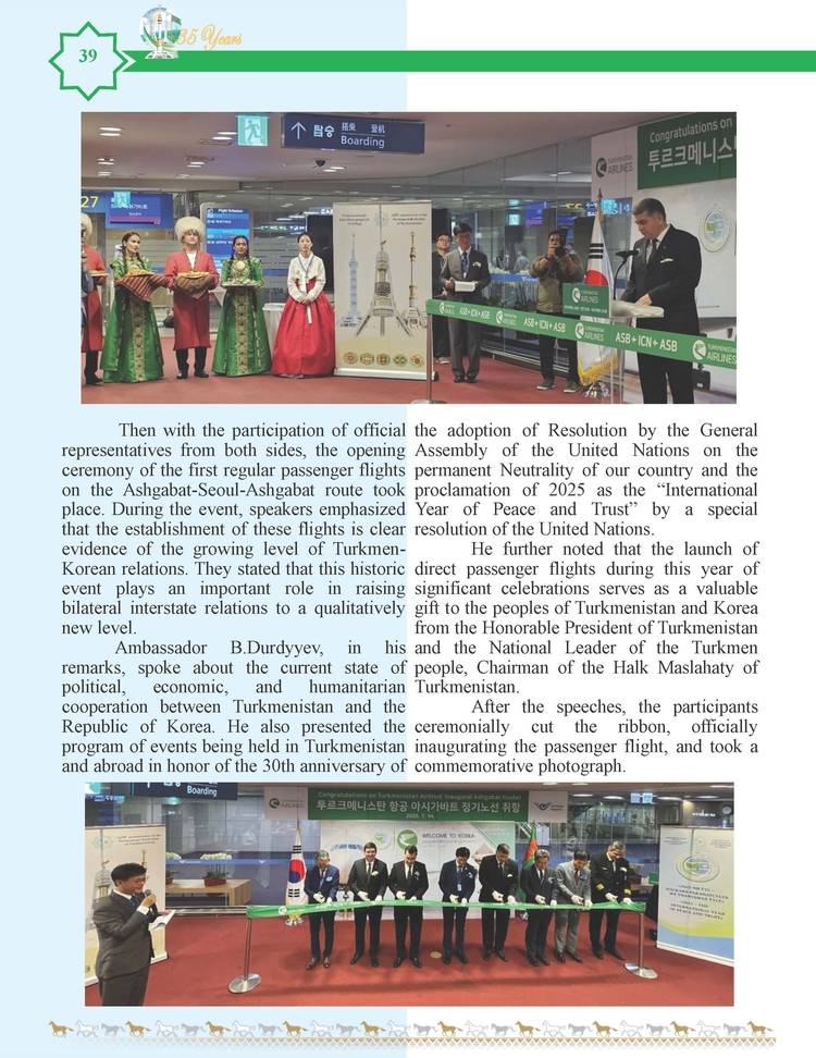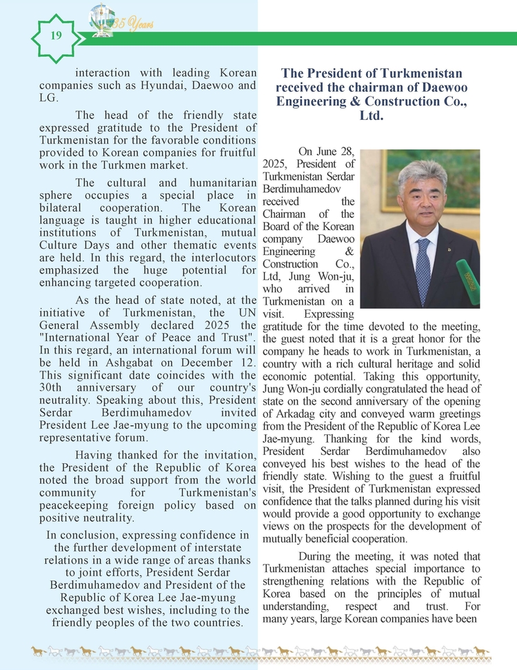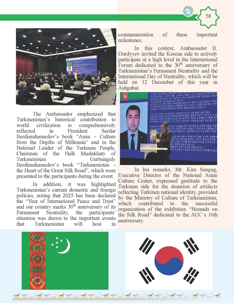 외교저널 (Diplomacy Journal) 이정하 기자 | TURKMENISTAN BILEN KOREYA RESPUBLIKASYNYN ARASYNDAKY HYZMATDA LYK OSDURILYAR