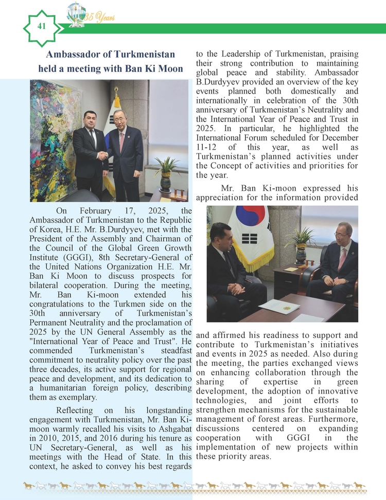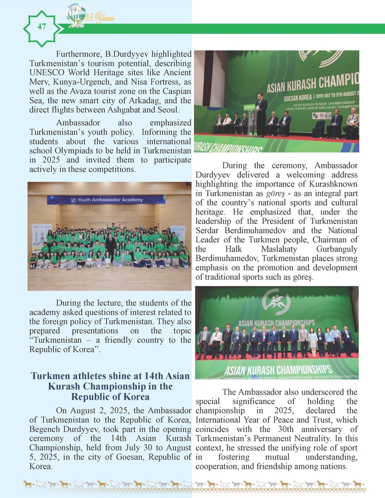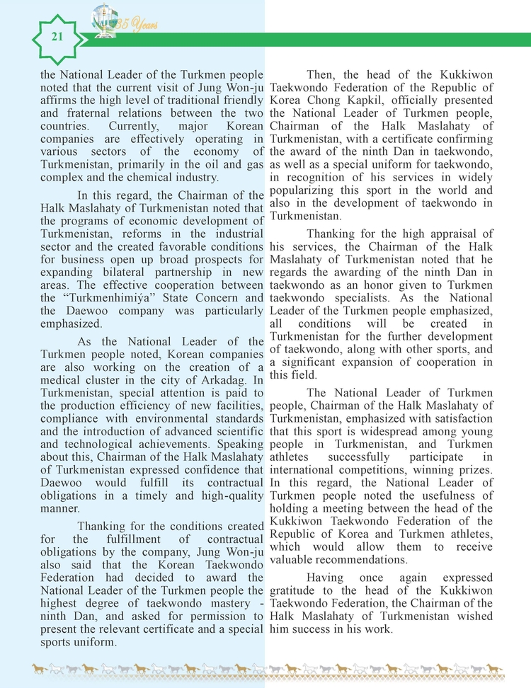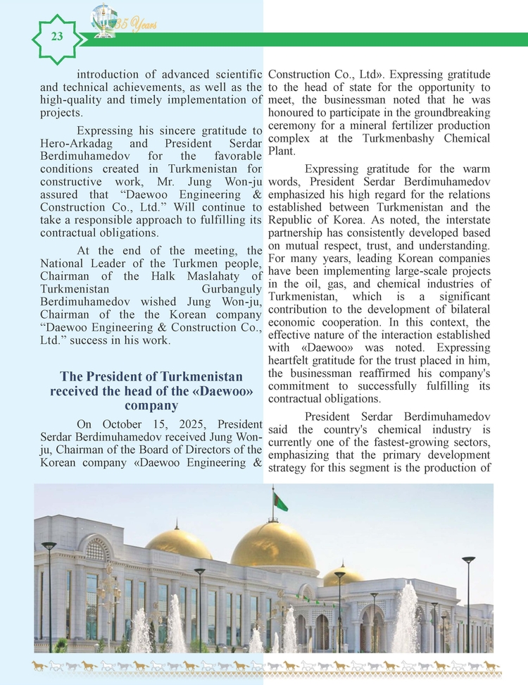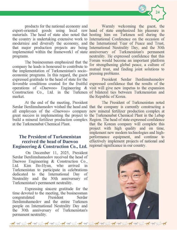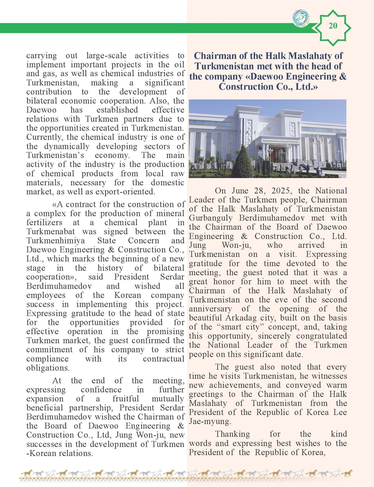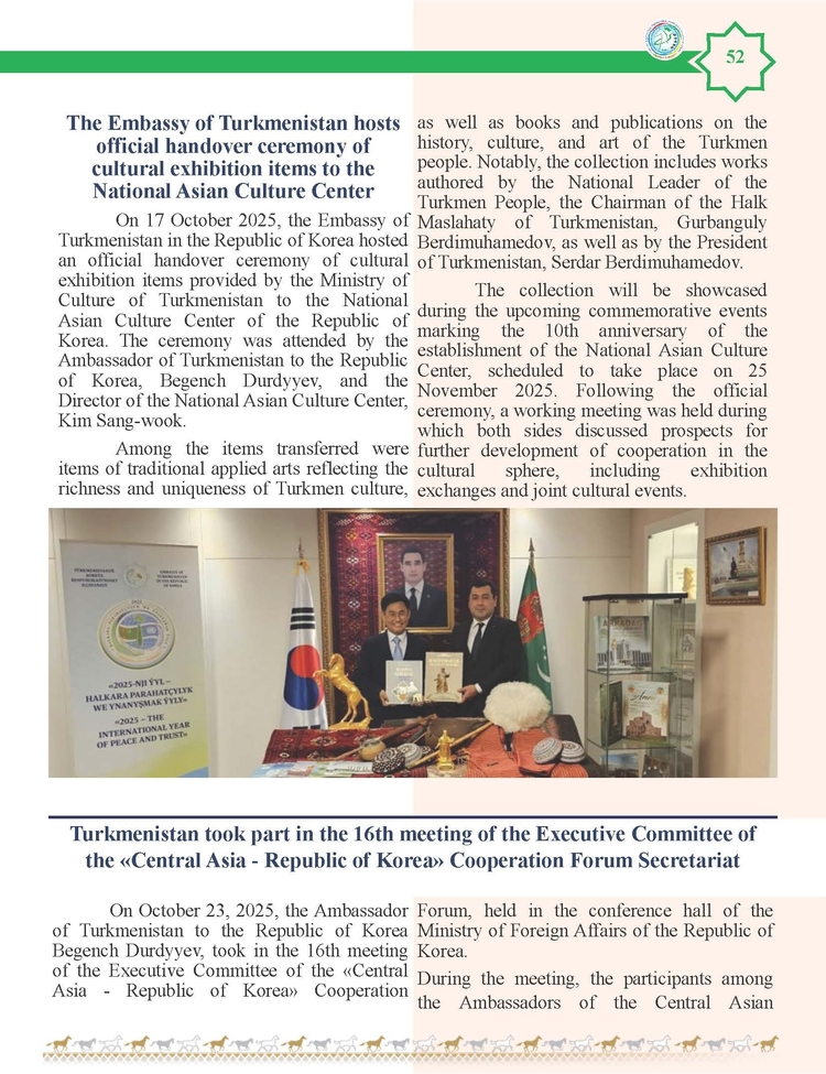 외교저널 (Diplomacy Journal) 이정하 기자 | TURKMENISTAN BILEN KOREYA RESPUBLIKASYNYN ARASYNDAKY HYZMATDA LYK OSDURILYAR