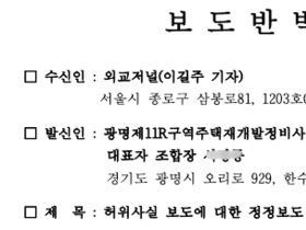외교저널 (Diplomacy Journal) 이길주 외교부 출입 기자 | 광명11구역 조합은 본지의 보도에 대해 '검찰 불송치'와 '조합 내부 자료'를 근거로 허위사실이라 주장하며 정정보도를 요구하고 있다. 그러나 본지가 확인한 경기도 및 광명시의 공식 실태점검 결과와 관련 법령에 따르면, 조합의 주장은 행정기관의 판단 및 객관적 구조와 정면으로 배치된다. "2억 원 초과 전자입찰 미이행" 보도는 합리적 근거에 기반한 공익적 문제 제기 조합은 광명경찰서의 불송치 결정을 근거로 '전자입찰 미실시' 보도가 허위라고 주장하나, 이는 사실의 왜곡이다. 불송치 결정의 한계: 경찰의 불송치 사유는 "전자입찰 없이 계약을 체결했다고 볼 증거가 부족하다"는 소극적 판단일 뿐, "전자입찰이 적법하게 이루어졌다"거나 "2억 초과 계약이 없었다"는 적극적 확인이 아니다. 행정기관의 위반 확인: 경기도와 광명시의 실태점검 결과, 조합은 입찰공고 시 '부정당업자의 입찰 참가자격 제한' 사항을 누락하여 「정비사업 계약업무 처리기준」 제10조를 위반한 사실이 공식 확인되어 행정지도를 받았다. 쪼개기 계약 의심 사례: 동일 시기(2020.02.24~03.20), 동일 업체(**프리미엄