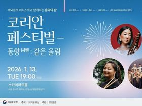 외교저널 (Diplomacy Journal) 이성준 기자 | 세계 각지에서 활동 중인 재외동포 예술인이 모국을 찾아, 음악으로 하나되는 특별한 무대를 선보인다. 재외동포청은 2026년 1월 13일 오후 7시, 스카이아트홀(서울 강서구)에서 ‘코리안 페스티벌, 동향(同響)-같은 울림’을 개최한다. 코리안 페스티벌은 문화예술을 매개로 재외동포와 국내 국민이 서로를 이해하고 유대감을 나누기 위해 재외동포청이 매년 마련하는 대표 문화 행사다. 이번 공연은 각기 다른 삶의 터전에서 활동해 온 재외동포 예술인들이 한 무대에 올라 ‘같은 울림’이라는 주제로 교감하는 문화 교류의 장으로 펼쳐진다. 재외동포 예술인으로는 재미동포 피아니스트이자 음악감독 에드윈 킴(Edwin Kim), 재호주동포 드러머 클로이 킴(Chloe Kim), 재미동포 재즈 색소폰 연주자 그레이스 켈리(Grace Kelly)가 출연한다. 여기에 국내 귀환동포 어린이들로 구성된 광주고려인마을 어린이합창단이 함께 무대에 올라 세대를 아우르는 감동적인 공연을 선보일 예정이다. 공연은 전석 무료로 진행되며, 사전 신청을 통해 누구나 관람할 수 있다. 관람을 희망하는 경우 아래 온라인 신청 링크를 통해 사전 접