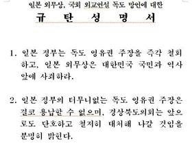 경상북도의회, 일본 외무상 독도 영유권 망언 강력 규탄