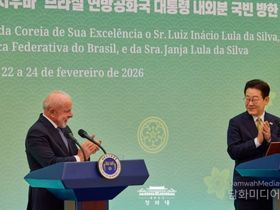 이 대통령은 "한국과 브라질은 지구 반대편에 있다는 지리적 한계를 뛰어넘어 상호보완적인 경제 구조를 바탕으로 긴밀히 협력해 왔다"면서 "양국 간 교역액은 최근 5년간 매년 100억 달러를 상회하고 있고, 우주·바이오·제약·문화산업 같은 미래 유망분야로 양국 협력이 점차 확장하고 있다"고 했다.